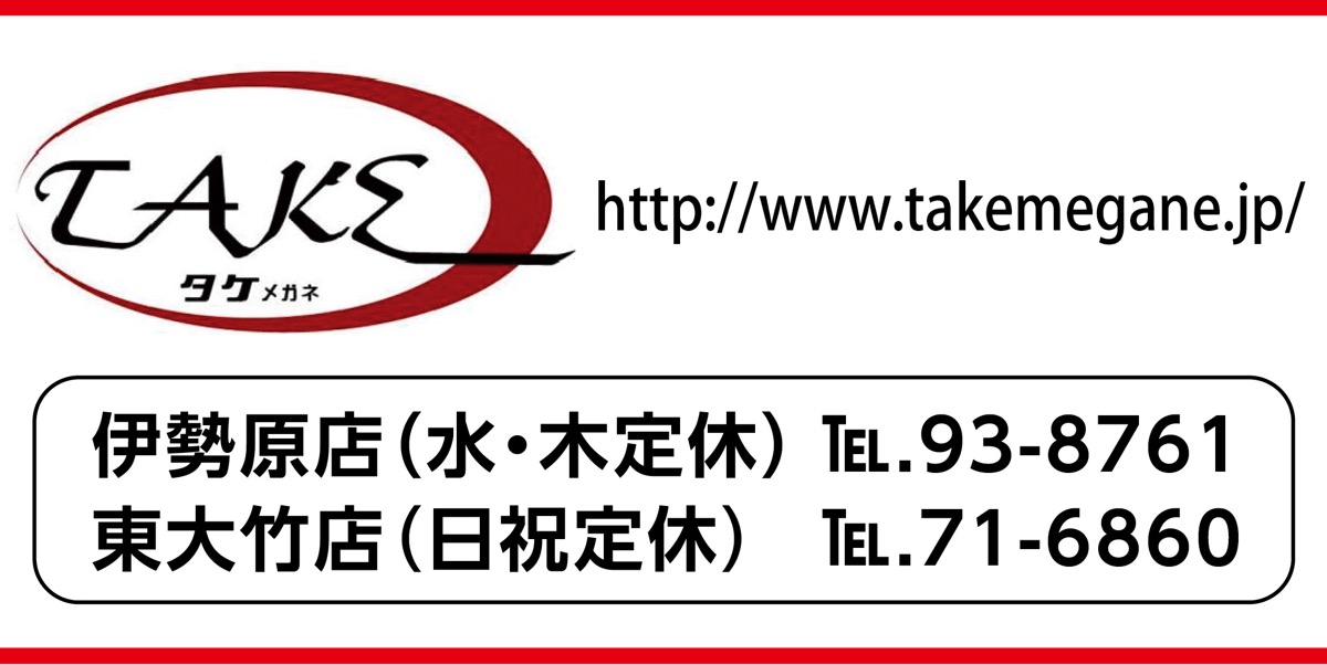 メガネ・コンタクトレンズの専門店『タケメガネ』(市内2店舗)は、街のメガネ屋さんとしてきめ細やかな「技術」と「サービス」が好評。今人気の「さばえ産メガネ」も豊富にそろっている。武和弥社長は「創業47年の伊勢原店と17年目の東大竹店ともに、今年も素敵で快適なメガネをお届けします」と話す。