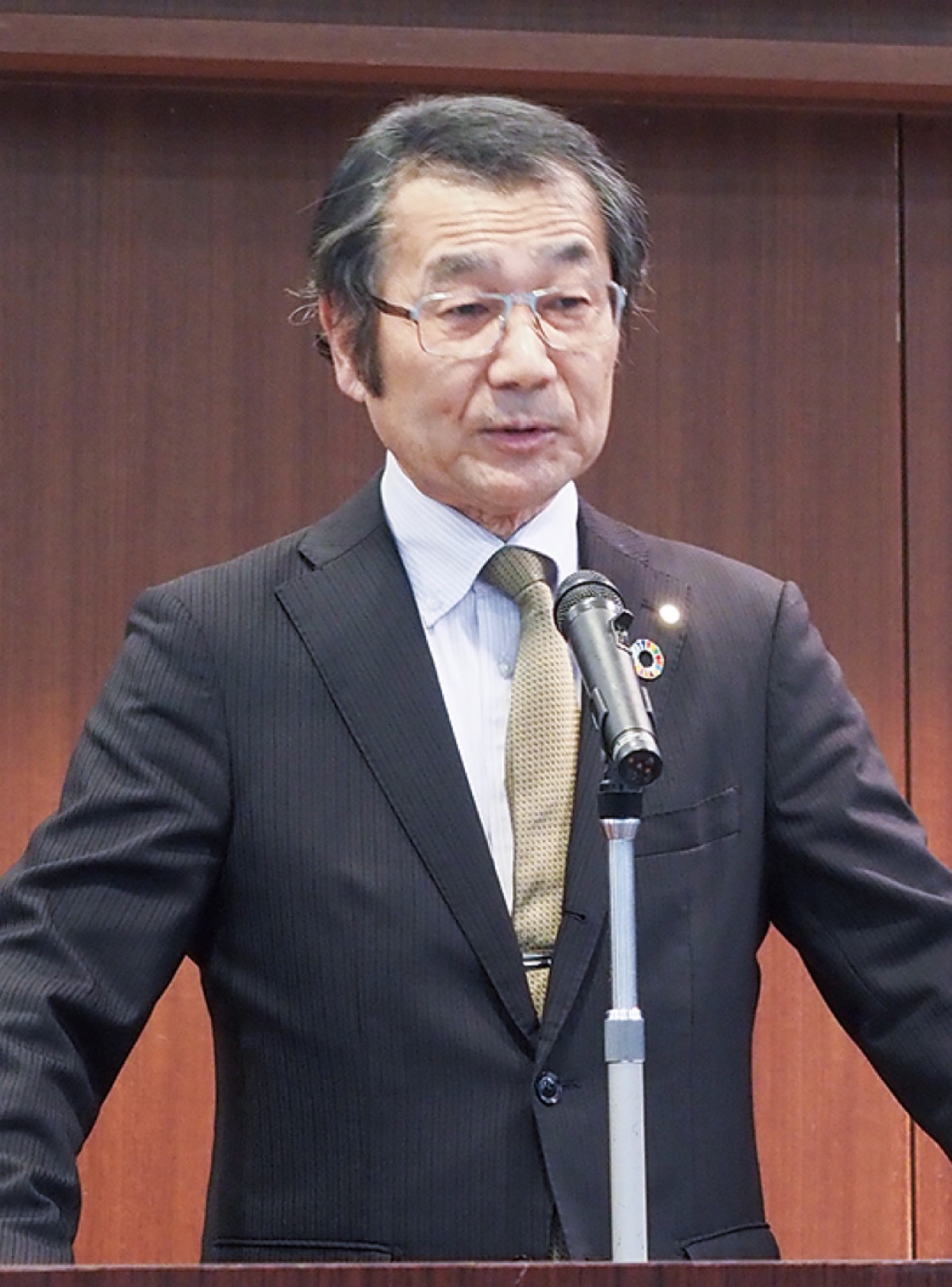 乾杯のあいさつには平塚法人会の荒井寿一会長が登壇。テレビ番組『ブラタモリ』で伊勢原が取り上げられたことに触れ、「その勢いで今年も伊勢原が活性化するよう、一人ひとりが前を向いていこう」と杯を交わした。会場では、地域経済の発展に向けて結束を深める様子が見られた。