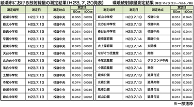 市では5月25日から30日に市内の小学校や中学校、保育園など24カ所で実施。今回は7月に小数点以下3位まで計測できるシンチレーション式環境放射線量測定機器を購入し、計測した。結果は市ホームページで公開されている。問合せは市環境政策課【電話】0467(70)5619まで。