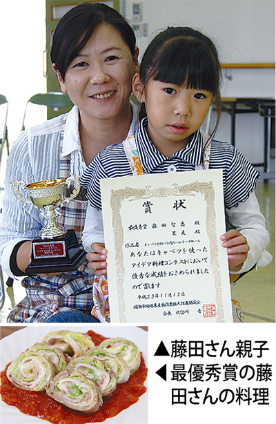綾瀬産農産物の普及と消費拡大を目的に開かれた「キャベツを使ったアイデア料理コンテスト」が11月12日に市保健医療センターで開かれ、落合南在住の藤田智恵さん・茉友さん親子が最優秀賞に選ばれた。