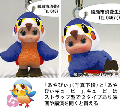 綾瀬市制施行30周年を記念してデザインされたキャラクター「あやぴぃ」と「ご当地キューピー」がコラボレーションし、このほど「あやぴぃキューピー」が誕生した。消費生活センターのPRを目的に製作されたもので、3月4日に綾瀬市文化会館で開かれる「市民活動フェスタ」で映画や講演会に参加した人に配布する。