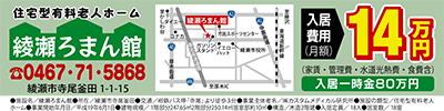 綾瀬市寺尾釜田の住宅型有料老人ホーム「綾瀬ろまん館」が現在入居者を募集している。