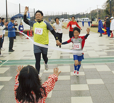 スポーツに親しみながら家族の絆を深めることを目的にした「第1回あやせ健康ファミリーマラソン大会」が3月24日(日)に綾瀬スポーツ公園で開かれ、市内の親子や夫婦など「ファミリー」のべ149組348人が走った。