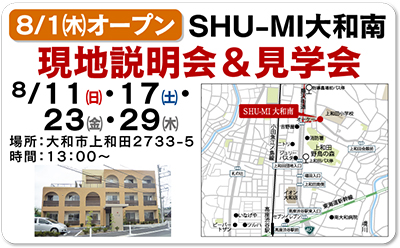 申し込みの多い「SHU―MI大和南」では、8月11日(日)から29日(木)までの4日間で現地説明会と見学会が行われる。
