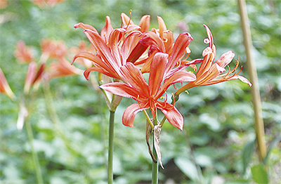 落合北の取内の森で、ヒガンバナ科の植物「キツネノカミソリ」の群生が確認された。