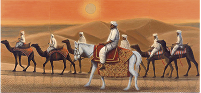 会場には171cm×364cmの大作「アフガニスタンの砂漠を行く」をはじめ、「薬師寺」「北山への道」など日本の風景を描いた作品なども展示されている。