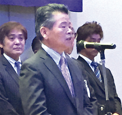 新役員紹介で壇上に上がった笠間新会長は、「これまでの商工会活動の中で、まちづくりの重要性を感じている。経済団体として、みなさんが安心・安全に住み続けられる環境づくりをしていきたい」と、就任の意気込みを語った。