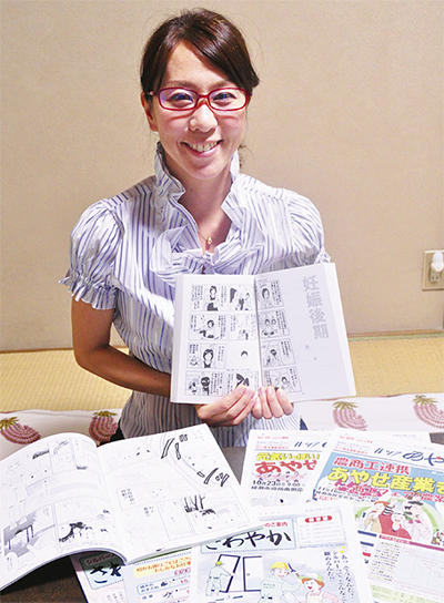尚桜子さんは大学卒業後に独学で漫画を学び、24歳でプロデビュー。大手出版社の漫画雑誌掲載経験を持ち、現在はフリーで活動している。市内ではあやせ産業まつりのポスターや、シルバー人材センターパンフレットのイラストなども手掛けている。