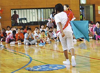 第27回綾瀬市子どもふれあいフェスティバルが9月21日、綾瀬市民スポーツセンターで行われた。厚木基地の小学3年生と、子ども会加入の市内の幼児や小学生、その保護者ら約250人が参加した。