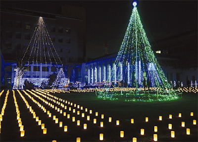 12月は光輝くイルミネーションとの幻想的な共演を楽しむことができ、例年家族や友人、恋人などが誘い合わせ訪れている。会場には温かいとん汁や飲み物の販売ブースも設けられる。