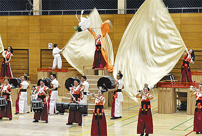 その後、生徒たちは配置につき、今大会のテーマ「邪馬台国」を披露。迫力ある演奏と躍動感溢れる演技に、来場者たちは惜しみない拍手を送った。