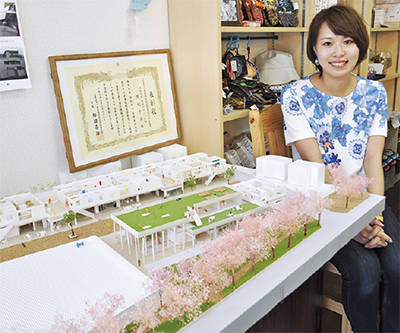 『住む』と『働く』を一つの地域で完結させ、活性化に繋げるビジョンを示した綾西バザール商店街の縮小模型が、同商店街内「花いちもんめ」に展示されている。現在、個人でデザインの仕事をする原地千尋さん(22・海老名市在住)が卒業制作として作ったもので、若い発想で付加価値を創出する新たな視点が盛り込まれている。
