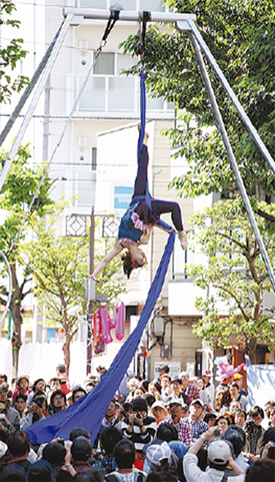 両日午前10時20分から、エイサーチームがオープニングパレードで盛り上げるほか、今年は熊本復興支援の物産展やチャリティーショーなども。ネットで大人気の「ナニコレ?劇団」が熊本から出演するほか、唯一免許証を持つ街頭紙芝居界のレジェンドも登場。懐かしい飴細工やバルーンアート、ジャグリング体験コーナー、地元飲食店も多数出店し、野毛ならではの食べ歩きも楽しめる。