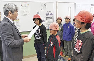 認定証を受け取った学級委員長の菅野晃太郎くんは、「いきなりでびっくりしました。最初は夢かなと思ったけど嬉しかったです」と話した。