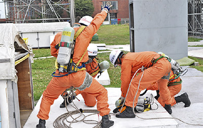 競技は陸上・水上の2部門で、障害突破は補助者を含む5人1組で構成される。始点から終点に至る通路に設けられた5カ所の障害を4人が互いに協力し、救助者全員で突破する。安全確実性と所要時間が評価対象となり、ノーミスで満点を取った上位タイムのチームが全国に駒を進める。