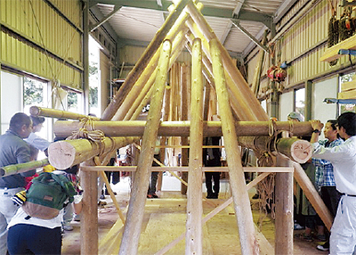 一般公開で展示されるものと同じ、仮設型の弥生時代の復元住居の上屋の組み立てを体験する。小学生以上対象。小学生は保護者同伴。動きやすく汚れてもよい服装で、昼食と軍手持参。定員は各回20人。