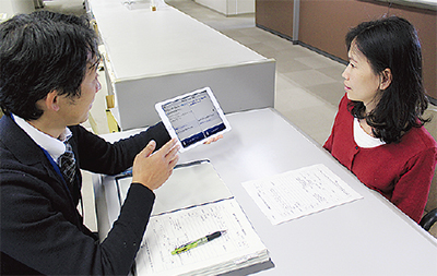 音声翻訳システムのタブレット端末は総合案内・子育て支援課・収納課・福祉総務課・企画課・健康づくり推進課に配備されている。