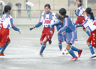 県内6チームで競われた同大会。午前中の予選は悪天候となったが決勝トーナメントでは雨があがり、市内7団に所属する女子選手を集めた「落合SCガールズJADE」が接戦を制し優勝した。「6年最後のガールズチャレンジで優勝できて良かった」と、芳賀友香主将は喜びを語った。