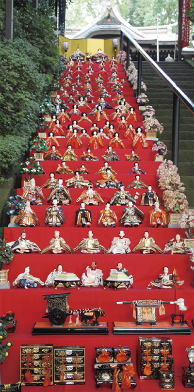 座間神社(山本俊昭宮司)で3月2日(金)から4日(日)まで、ひな祭りに合わせたアート展「雛まつり花公望 杜につどうアーチ2018」が開催される。午前10時から午後7時(4日は5時まで)。入場無料。期間中は同神社の七十七段階段にひな人形一千体が並び、2日と3日にはライトアップも予定されている。
