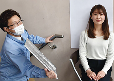 東京ビッグサイトで2月7〜9日にかけて行われた「グルメ&ダイニングスタイルショー」で、ブタロケ隊が急きょポスターの撮影を行った。これは、同イベントに出店した新グルメ「あやせとんすきうどん」をPRするためのもの。同隊の丸田浩明さんがデザイン・コピー・撮影を行い、市商工会の加藤聡穂さんがモデルを務めた。