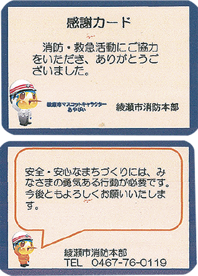消火・救急活動など緊急を要する現場では、通報者への十分なケアができないことが多い。同カードを渡すことで感謝の意を表し、協力者の不安を少しでも和らげようという目的がある。他自治体の消防での取り組みを参考に綾瀬独自のカードを考案し、昨年11月から取り入れている。