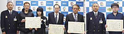 市消防本部が3月14日と15日に、消防協力表彰に伴う感謝状の贈呈を行った。市の消防表彰規定に基づいてのもので、三浦祐一前消防長から賞状が手渡された。
