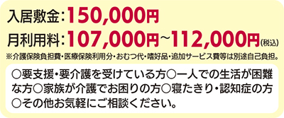 同施設の大きな特徴は、生活保護者を対象としたリーズナブルな料金設定。これには綾瀬で生まれ育ち、消防団などボランティア活動にも携わっているオーナーの「綾瀬で困っている方の力になりたい」という強い思いがある。もちろん生活保護対象以外の方も利用可能。相談や見学希望の方は、お気軽にお問合せを。