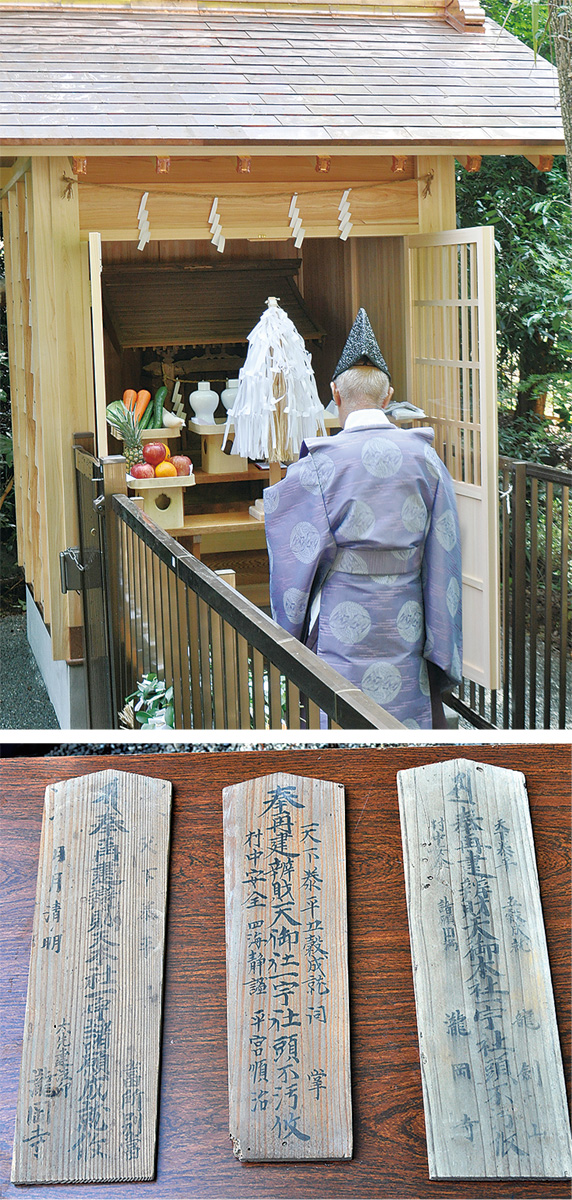 吉岡神明社で9月5日、弁財天宮覆殿完成に伴う遷座祭が執り行われ、一時本殿に移されていた御霊が戻された。