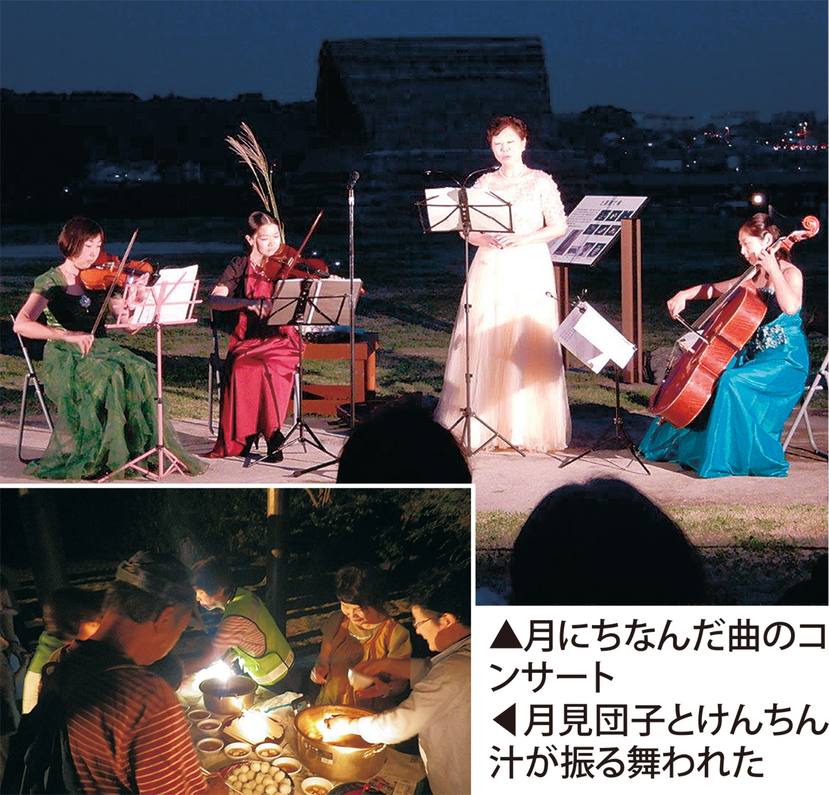 また、綾瀬市史跡ガイドボランティアの会による吉岡の民話「こまげたおせん」の朗読や、ソプラノ歌手である米島美穂子さんによる「荒城の月」など月にちなんだ曲の歌唱も行われた。