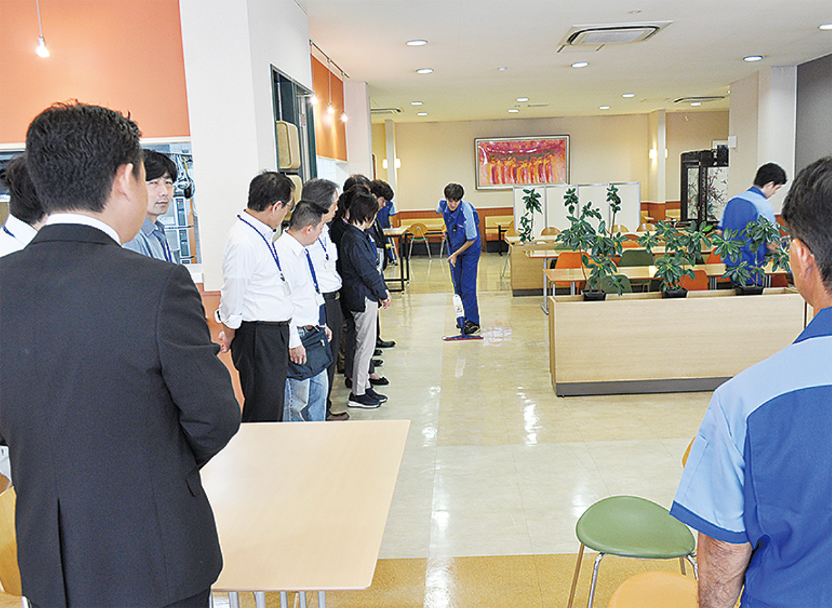 また、障害者雇用の受け皿として創設された(株)日南の関連会社である(株)REでも、会社や業務内容を説明。今後の事業展開の可能性なども話された。見学では社内清掃作業の様子や、障害者が携わった製品などを見て回り、参加者から積極的に質問が寄せられていた。