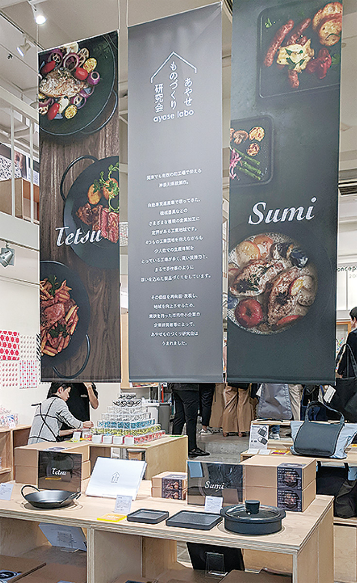 綾瀬ブランド新商品開発支援事業として活動している「あやせものづくり研究会」が、2年半の開発期間を経て初の製品化に成功した。今回発表されたのは(株)ナウ産業の「テツナベ」と、旭工業(有)の「スミナベ」の2種。これまで企業向けの工業製品製造を行っていた2社が、その技術力を駆使した消費者向けの4商品を10月23日に発売した。