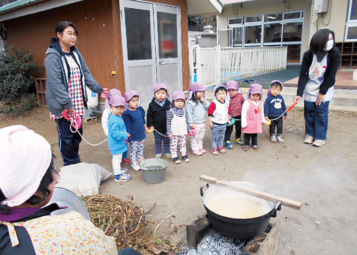 食育に力を入れる同園が、2年前から行っている取り組み。神奈川県ふるさとの生活技術指導士である古塩幸子さんの協力を得て実施している。