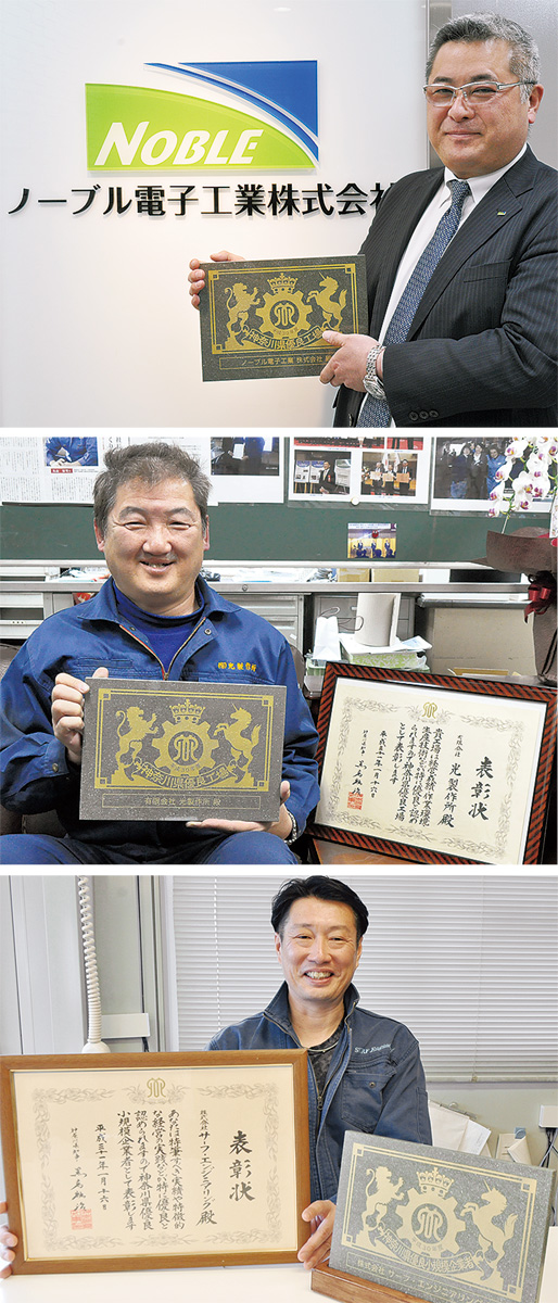 県がこのほど、ものづくり産業の発展に貢献している優良工場9社と優良小規模企業者12社を表彰した。綾瀬からは優良工場にノーブル電子工業(株)(土橋恒一社長/上土棚北)と(有)光製作所(丸山裕司社長/深谷上)が、優良小規模企業者に(株)サーフ・エンジニアリング(根本秀幸社長/吉岡東)が選ばれた。