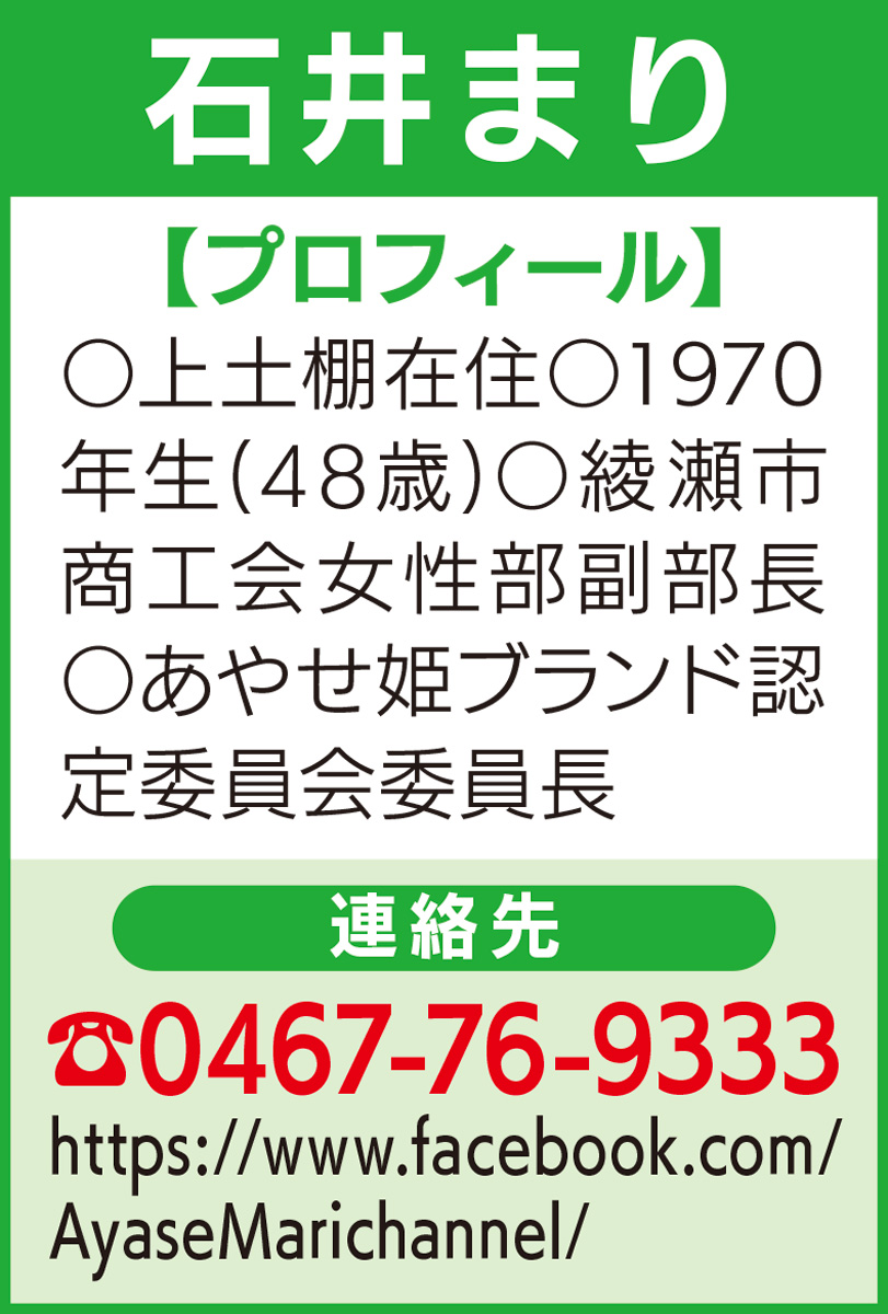 価値観や働き方が多様化する中、綾瀬でも女性が働きやすい環境を整える必要があると感じます。また、女性が起業しやすいよう「仲間作り」が行える環境も必要です。
