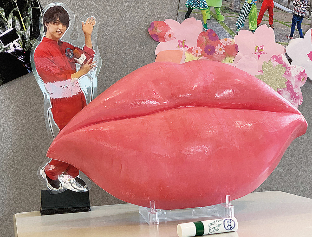 綾瀬市専属レポーターとしてtvk「猫のひたいほどワイド」の火曜レッドを2年間務めた石渡真修さんの「くちびる」のオブジェが、市役所1階に展示されている。