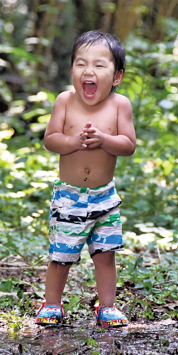 深谷上の自然公園「長峰の森」にこのほど、高さ10メートルのウォータースライダーなど2基が現れ、集まった子どもたちが水遊びを楽しんだ。