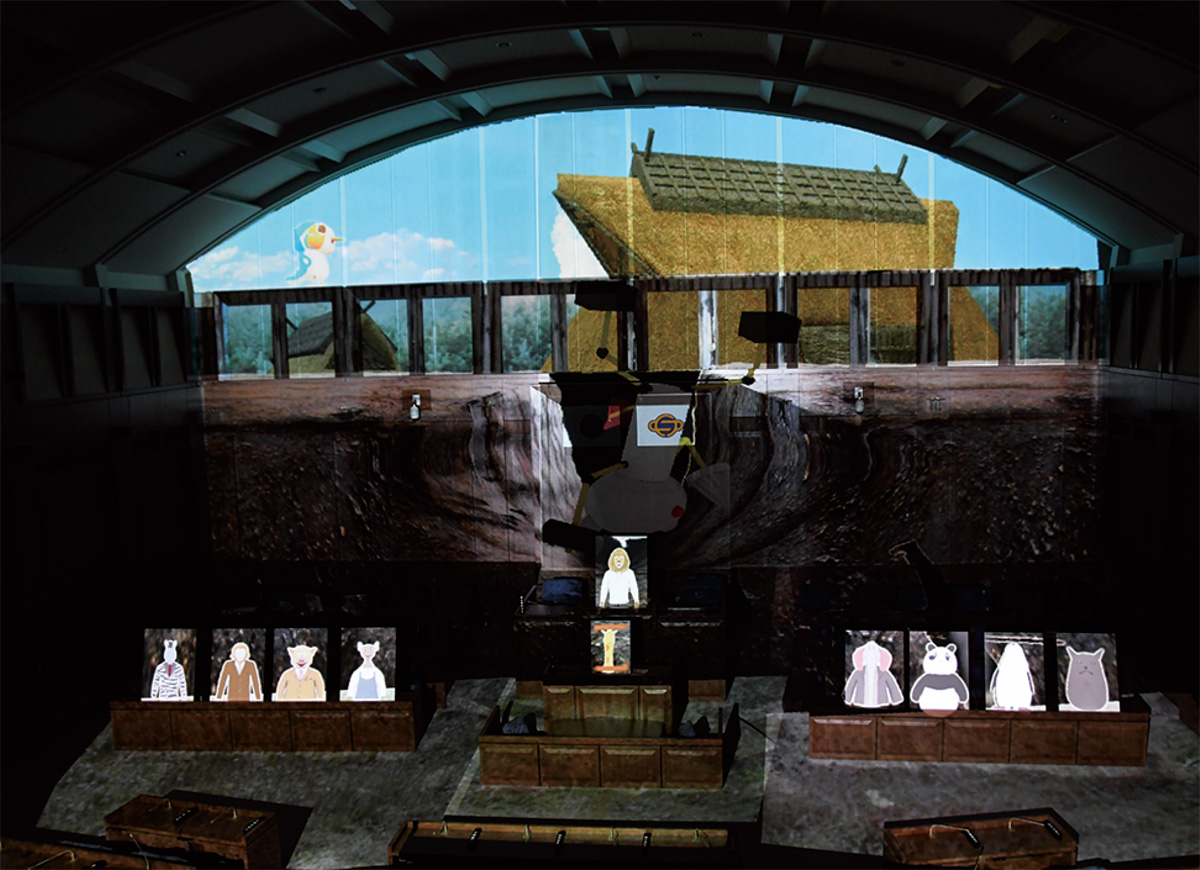 綾瀬市議会の本会議場で7日、壁や建物に映像を投影するプロジェクションマッピングによる「動物議会」が開かれた。