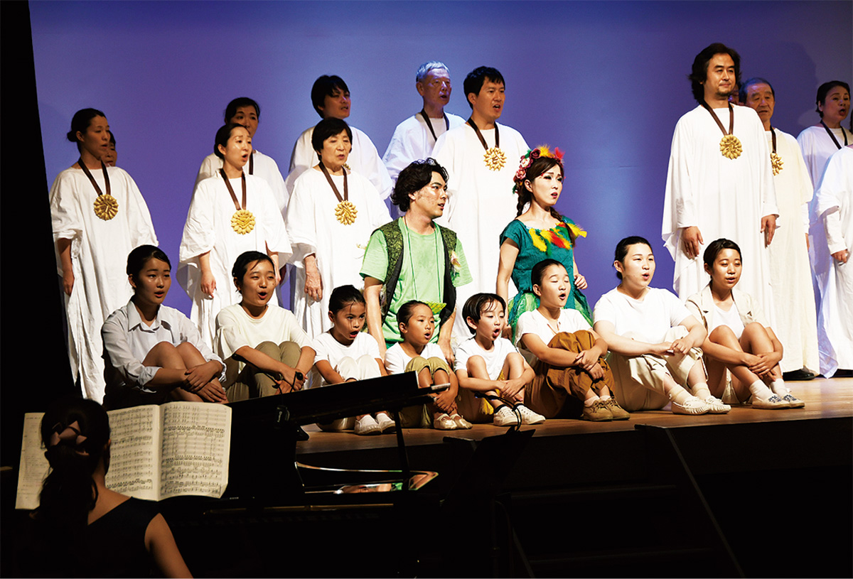 この公演は市民参加型のオペラ作りを通じて地域を活性化しようと市民グループ2団体が取り組んだ。市民から参加者を募り今年5月から毎週ワークショップを開くなどして準備してきた=写真。