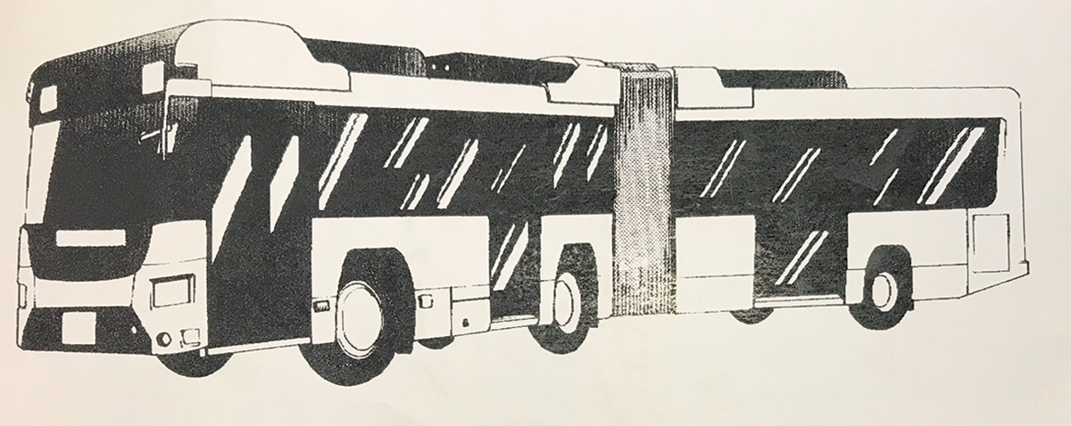 今では燃費や環境にやさしいディーゼルエンジンとモーターを併用したハイブリッドバスや一度に大量のお客様を乗せられる車両2両を蛇腹(じゃばら)で繋いだ全長18メートルもある連節バスなどがあります。