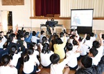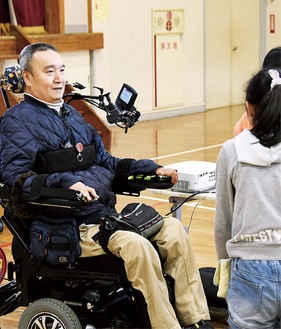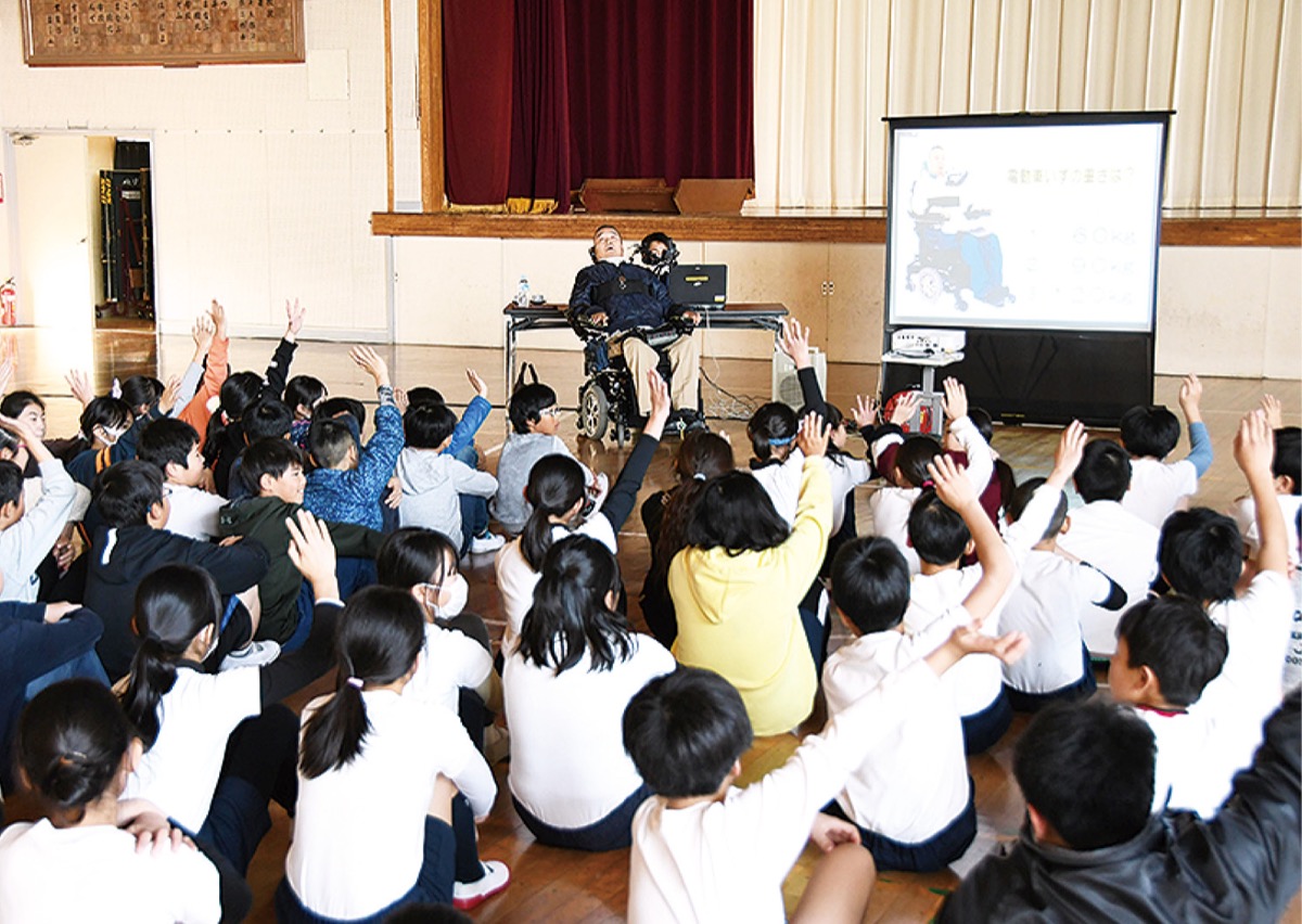 金子さんは、車いすの重さが120キロに及ぶことや自宅での暮らしの工夫、車いすでのスポーツや絵を描く趣味などについてわかりやすく解説。「気が付いたら声をかけて手伝ってくれると助かる。お年寄りやお友達が困っていても同じ」などと語りかけ、心のバリアフリーを意識することの大切さを伝えた。