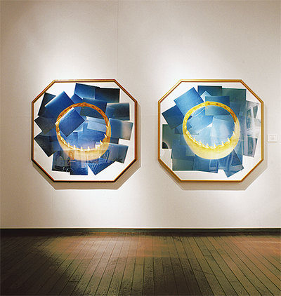 作品は宮本さんが、東京芸大大学院油画技法材料研究室で学んでいた頃のもの。当時、プランクトンやミジンコ、ゾウリムシなど微小生物をモチーフに絵を描いていたという。その題材探しとして始めたのが顕微鏡での写真撮影。その中で新たなひらめきが生まれ、写真を使った作品づくりが始まった。