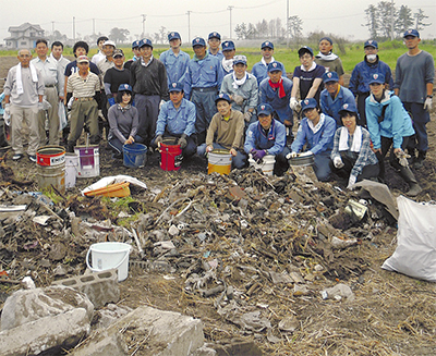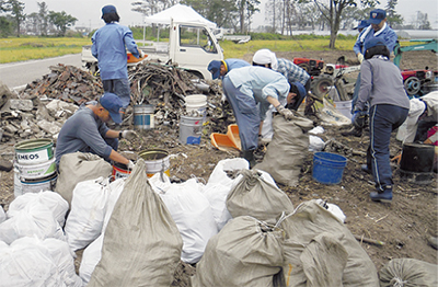 愛川町役場の職員親睦会21名が7月14日、東日本大震災の被災地である宮城県山元町で瓦礫撤去ボランティア活動を行った。