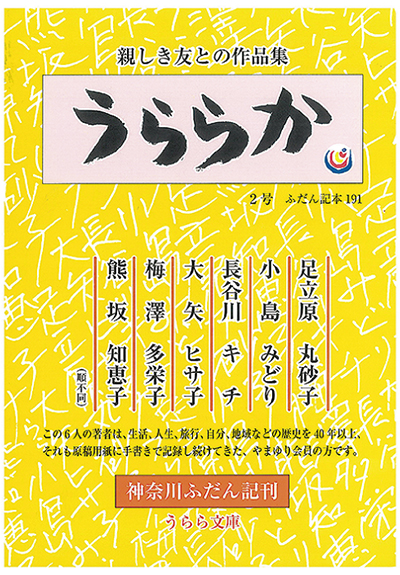 文章運動グループ「かながわふだん記」(足立原三紀子代表)の会員有志6人による自分史作品集「うららか」がこのほど発行された。著者は平均年齢88歳を超える女性たち。暮らし、人生、旅行、自分、地域など、それぞれが40年以上に渡り記録してきたものを1冊にまとめている。足立原代表は「貴重な生き様あふれる文章が集まっている」と話している。