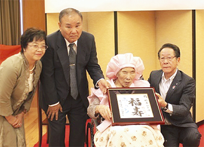町役場によると、今年度は5人に祝いの品を贈呈し、これから2015年3月末までに100歳を迎える人は2人。町長が誕生日前後に訪問する予定だという。10月8日現在、町内在住の100歳以上の人は11人。