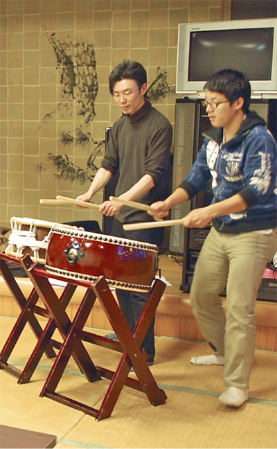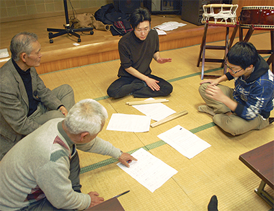 八菅太鼓復活のきっかけは今年2月、まちづくりネットワーク愛川のメンバーである大野遼さんが、旅館川正社長の足立原等さんから聞いた一言だった。「昔は八菅太鼓っていうのがあった」。その音色を甦らせようと大野さんが各地に働きかけたところ、当時の録音テープが見つかった。愛川高校和太鼓部OBで組織する太鼓ユニット「打縁」の綱島健司さんに協力を依頼し、テープの音から楽譜を再現してもらった。