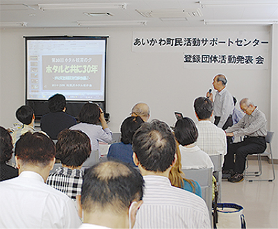 同センターは、愛川町を拠点に活動するボランティア、NPO、サークルや自治会など、町民の自主活動を支援する組織。発表会では、登録団体の中から6団体が日頃の活動やこれまでの実績を発表した。