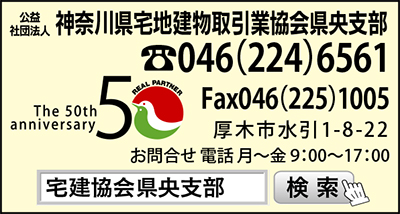 愛川町役場、文化会館他で10月22日(日)、第33回愛川町ふるさとまつりにて「不動産フェア」が開かれる。主催は、今年50周年を迎える(公社)神奈川県宅地建物取引業協会県央支部(三橋義人支部長)。午前10時から午後3時。入場無料。
