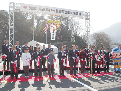 県道54号 (相模原愛川)にある馬渡橋の架け替え工事が完了し2月17日、開通の記念式典が行われた。