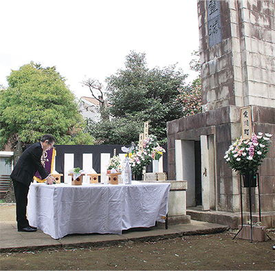 愛川町中津にある中津忠霊塔で4月6日、愛川町戦没者追悼式が開催された。