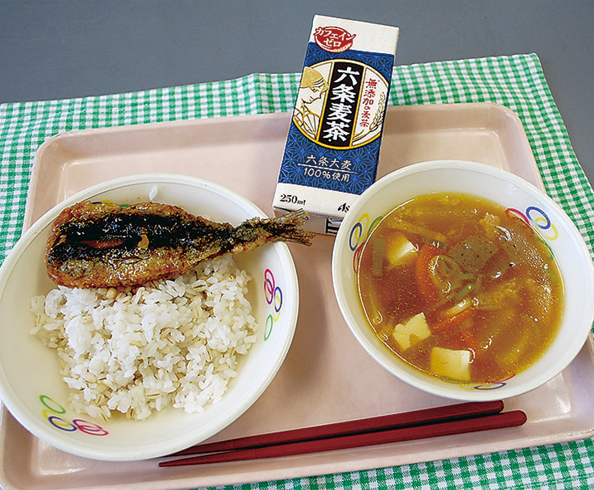 これは、6月11日から22日の食育週間にあわせて2015年度から行われているもの。「粗食」とは、粗末な食事ではなく穀類と野菜を主とした食事のこと。今は飽食の時代と言われているが、昔ながらの献立は食材の味が良くわかり、消化器官が栄養を吸収しやすいという。この日の献立は麦ごはん、けんちんじる、イワシのかば焼き、麦茶。半原小学校では、1年生も「お魚が好き」「こんにゃくが美味しい」と、給食を楽しんだ。今年度は、9月と1月にも粗食給食が予定されている。